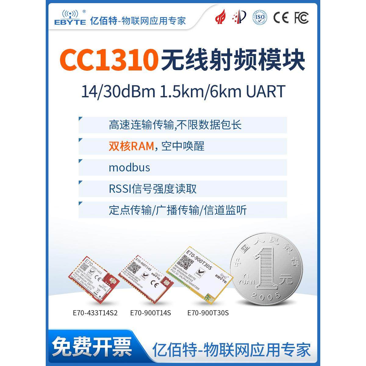 亿佰特CC1101无线模块433/868/915MHz数传收发工业级射频通讯模块
