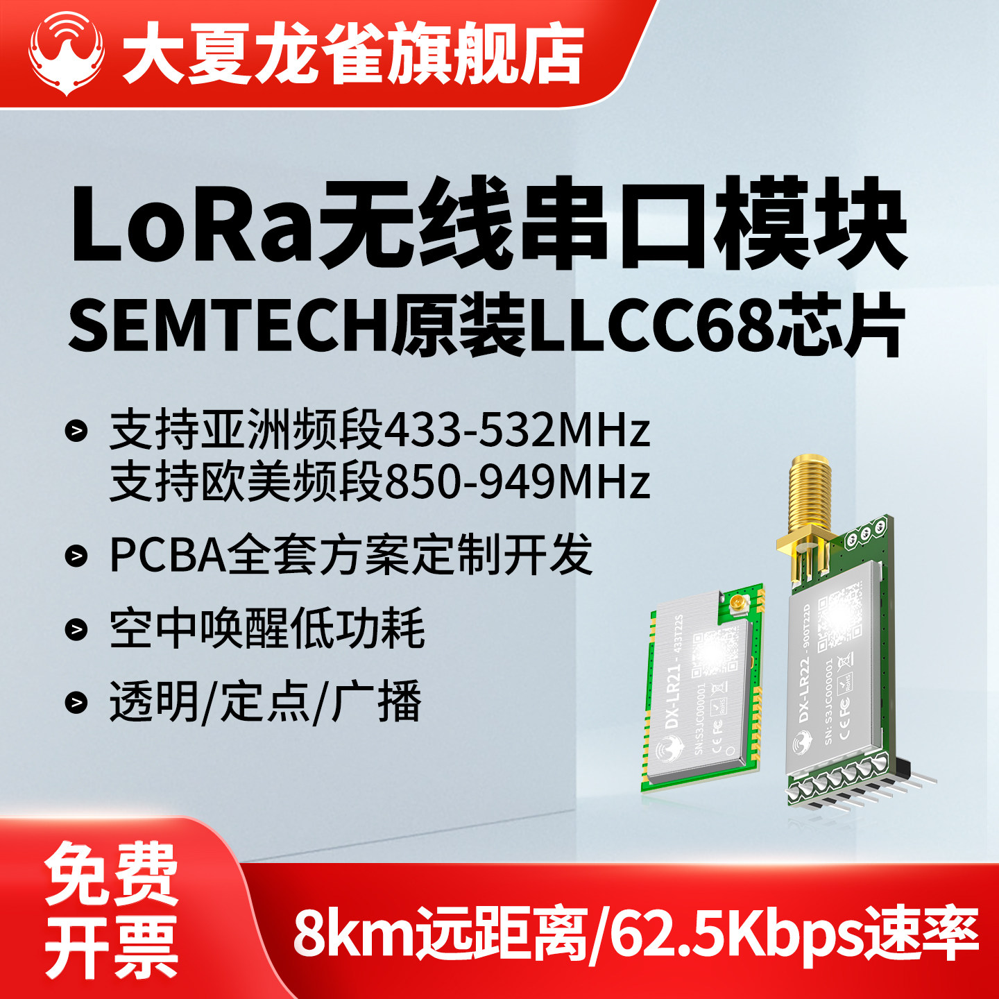 大夏龙雀LoRa模块LLCC68无线收发433接收发射传输8km串口通信LR22