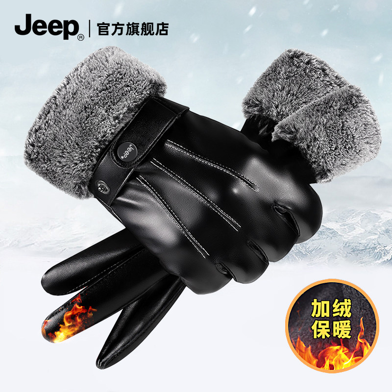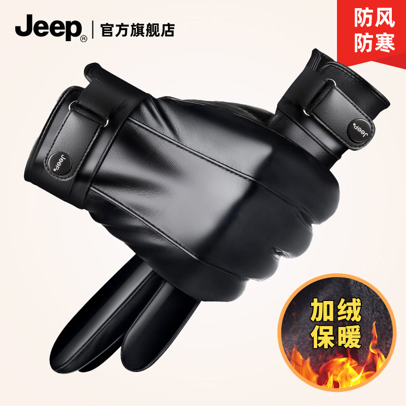 jeep吉普皮手套男士冬季保暖加绒加厚防风防寒骑行摩托车触屏手套