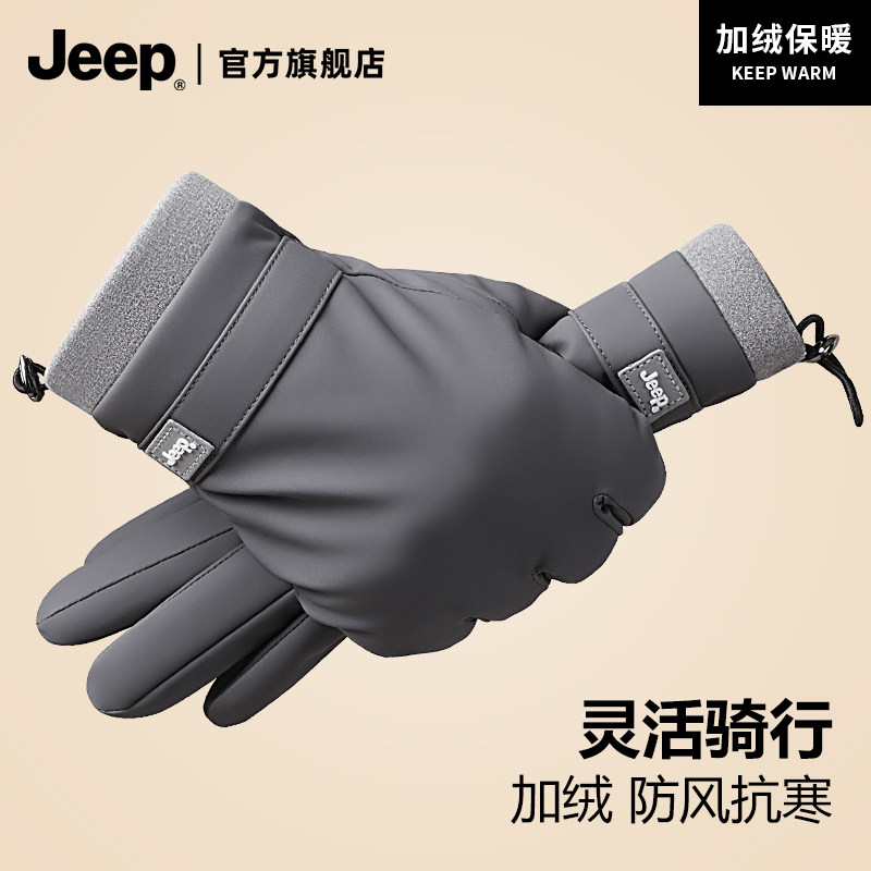 jeep吉普骑行手套男士冬季加绒加厚保暖防风防寒可触屏摩托车手套