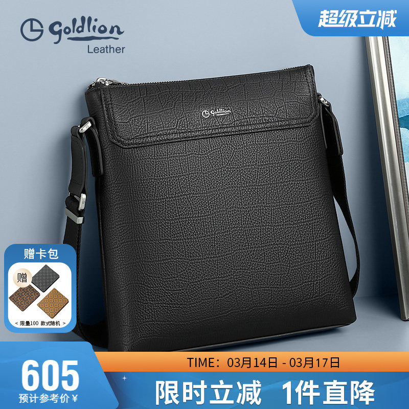 金利来新款手提包男士轻奢真皮包盖式公文包压花头层牛皮商务男包