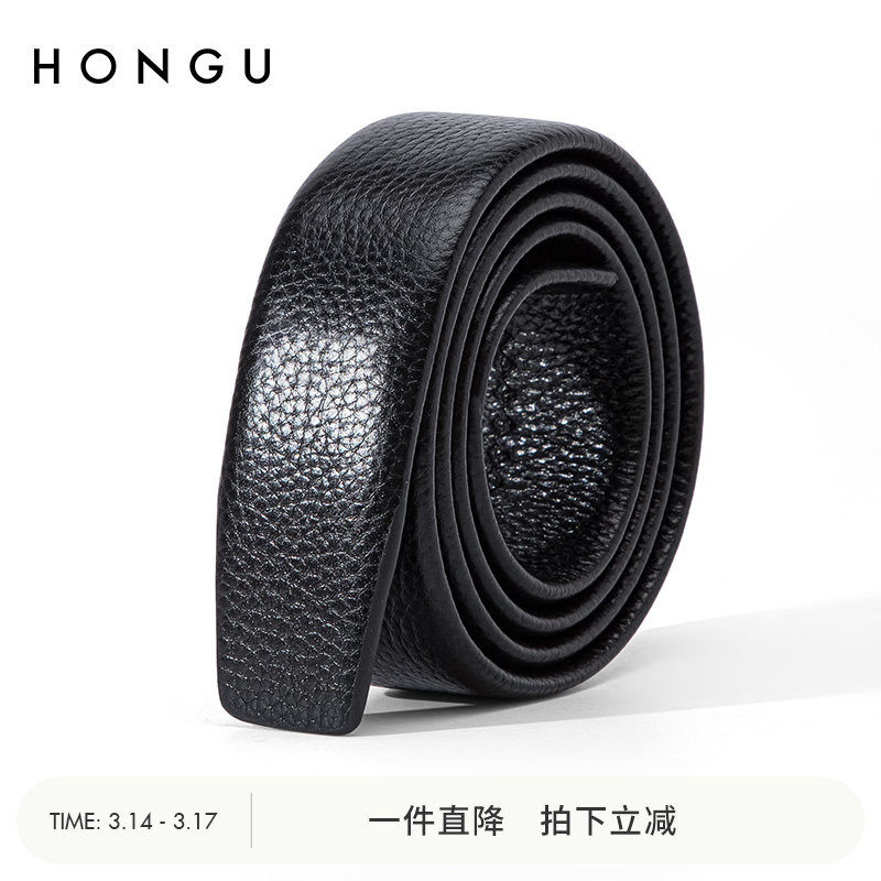 红谷皮带真皮不带头自动扣头层牛皮皮条裤带商务休闲青年男士腰带