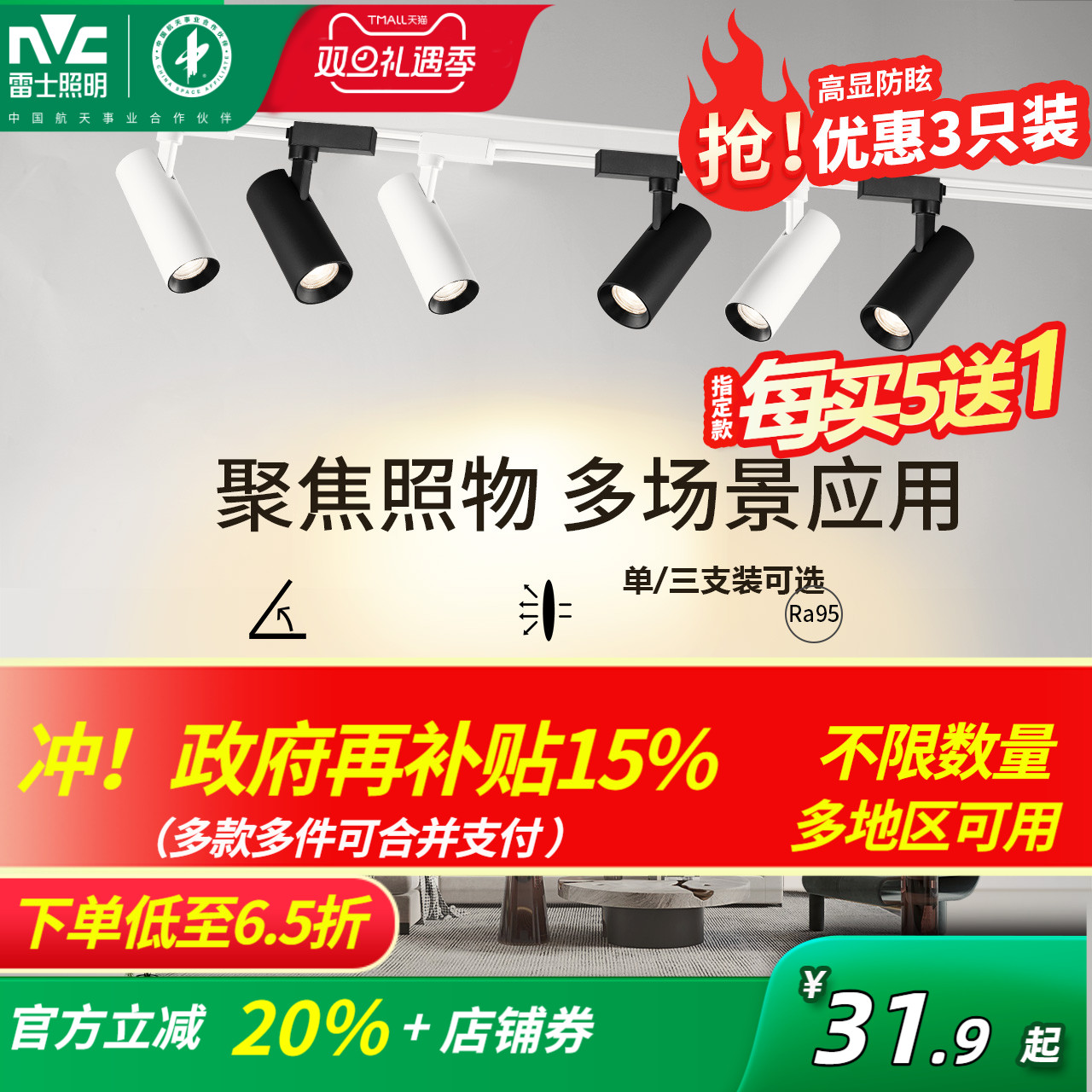 雷士照明射灯轨道射灯店铺商用轨道灯led射灯明装轨道客厅家用