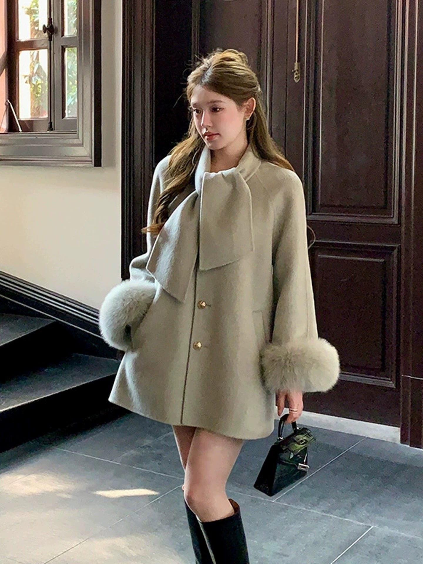 2026春季狐狸毛小香风大衣短款千金感小个子羊毛双面呢外套女冬