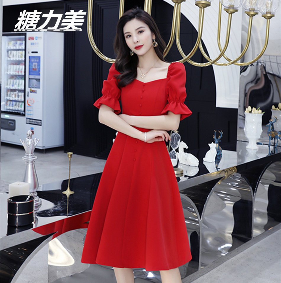 糖力美20225早春通勤气质宴会礼服裙平时可穿中长款敬酒服连衣裙