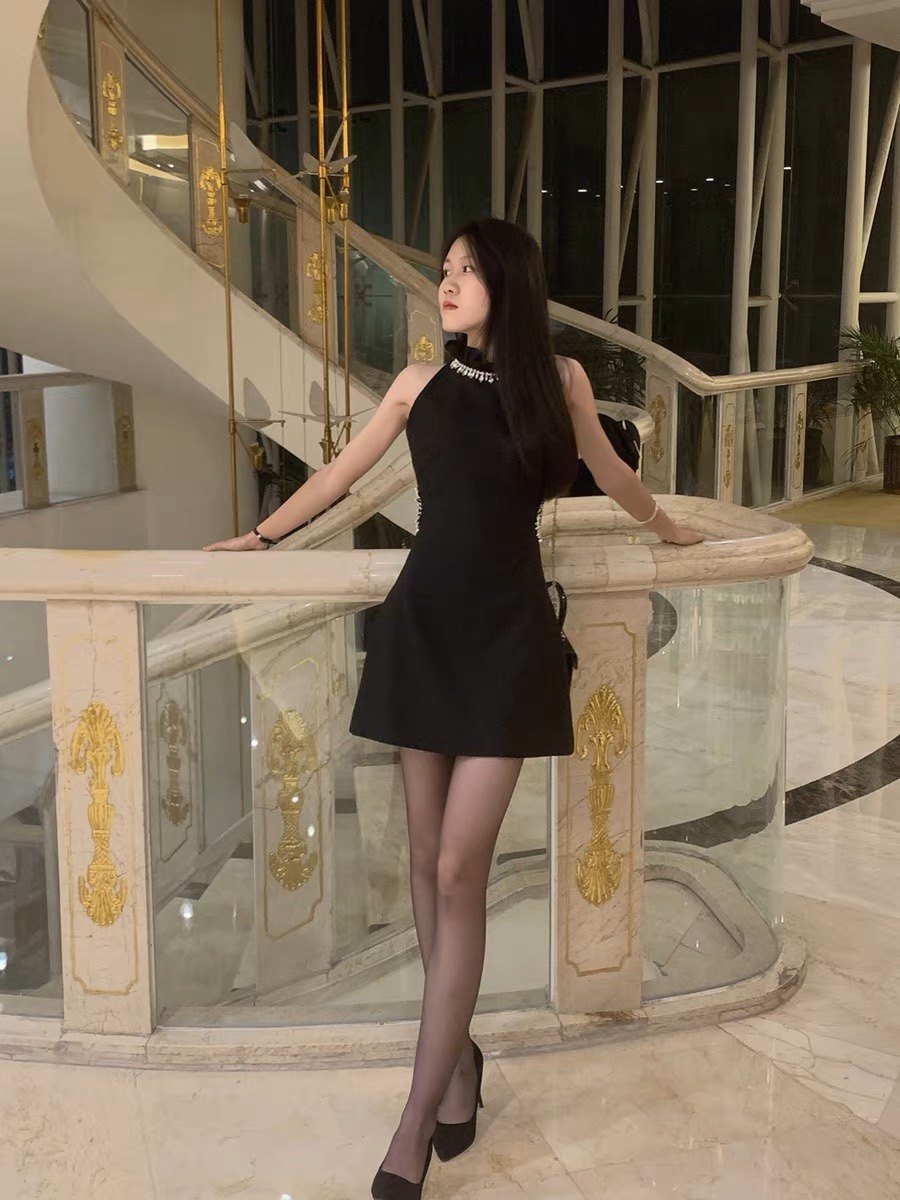 黑色小晚礼服裙女轻奢小众高端气质名媛小个子生日宴会挂脖连衣裙