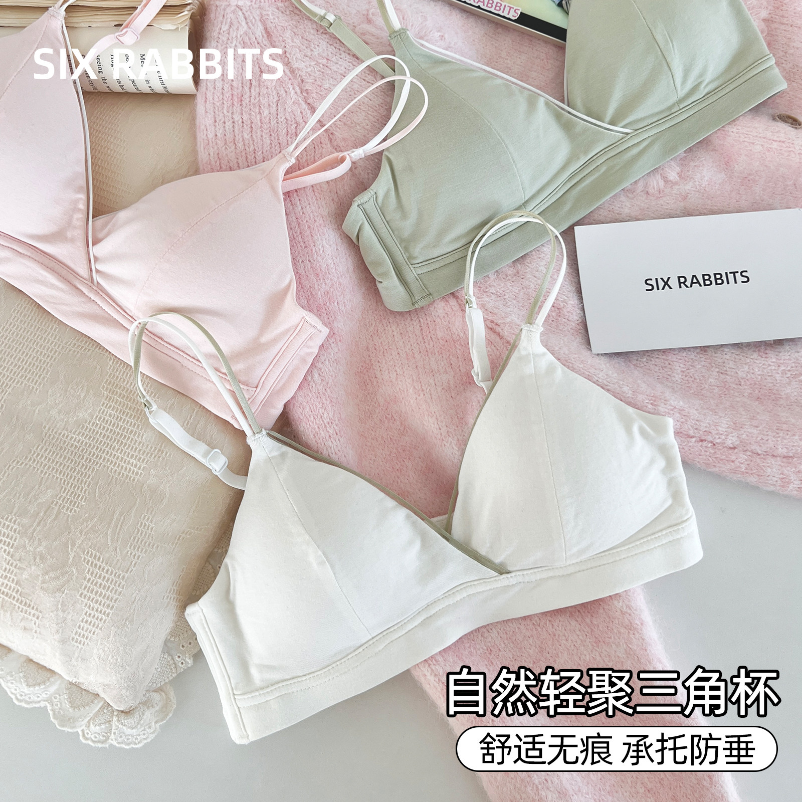 六只兔子三角杯内衣女薄款深v领胸罩无钢圈收副乳防下垂无痕文胸