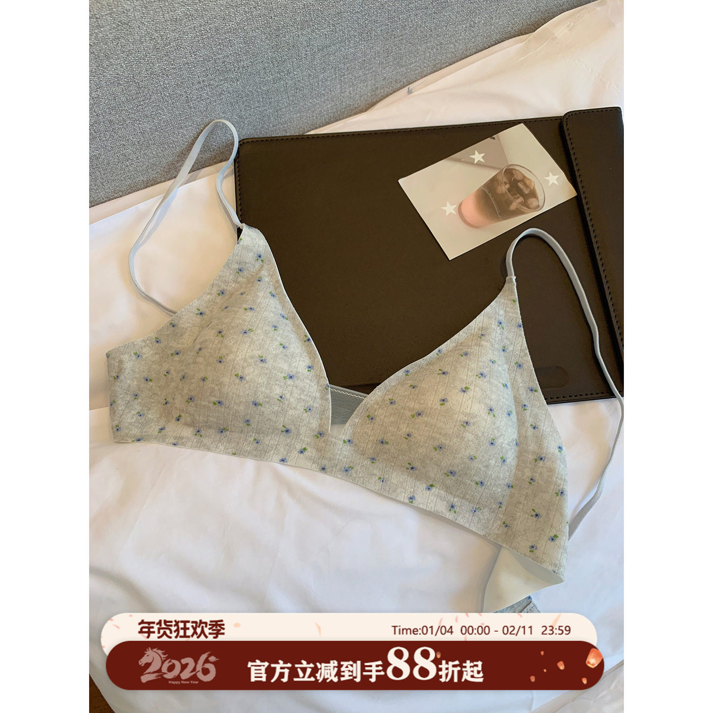 馨帮帮Bra 小清新碎花三角杯内衣女小胸聚拢收副乳防下垂美背文胸