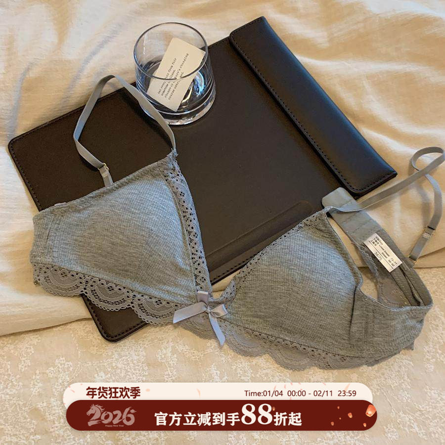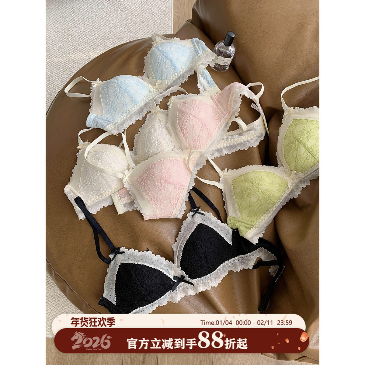 六只兔子法式三角杯内衣女性感前扣小胸聚拢薄款甜美蕾丝少女胸罩