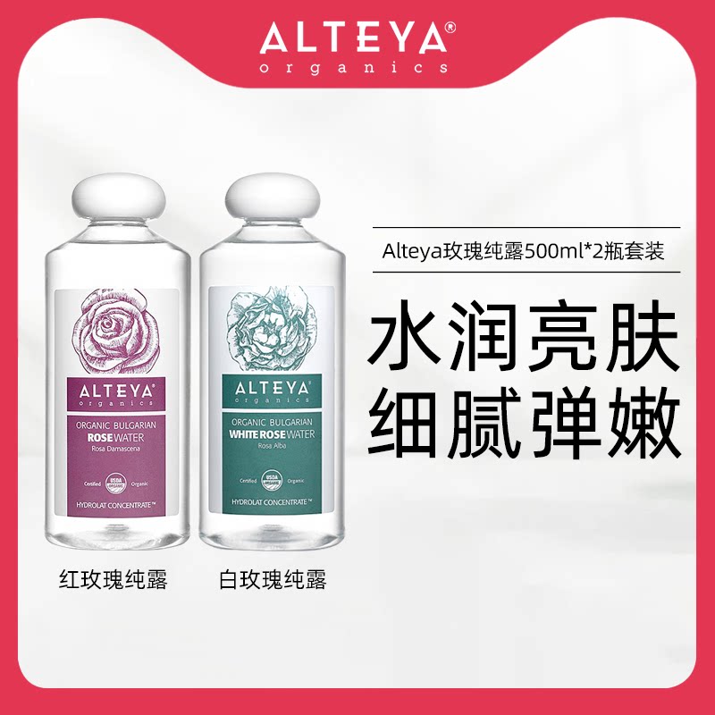 Alteya玫瑰纯露爽肤水500ml*2瓶装红白玫瑰有机补水保湿舒缓提亮