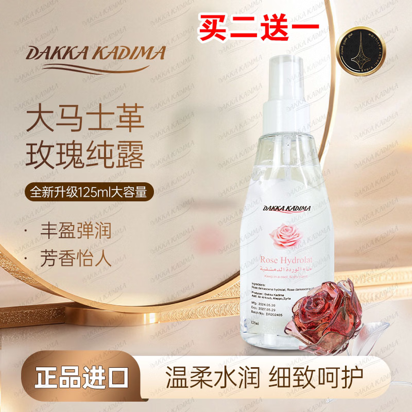 叙利亚国家馆官方旗舰店正品原装进口大马士革玫瑰纯露爽肤水喷雾