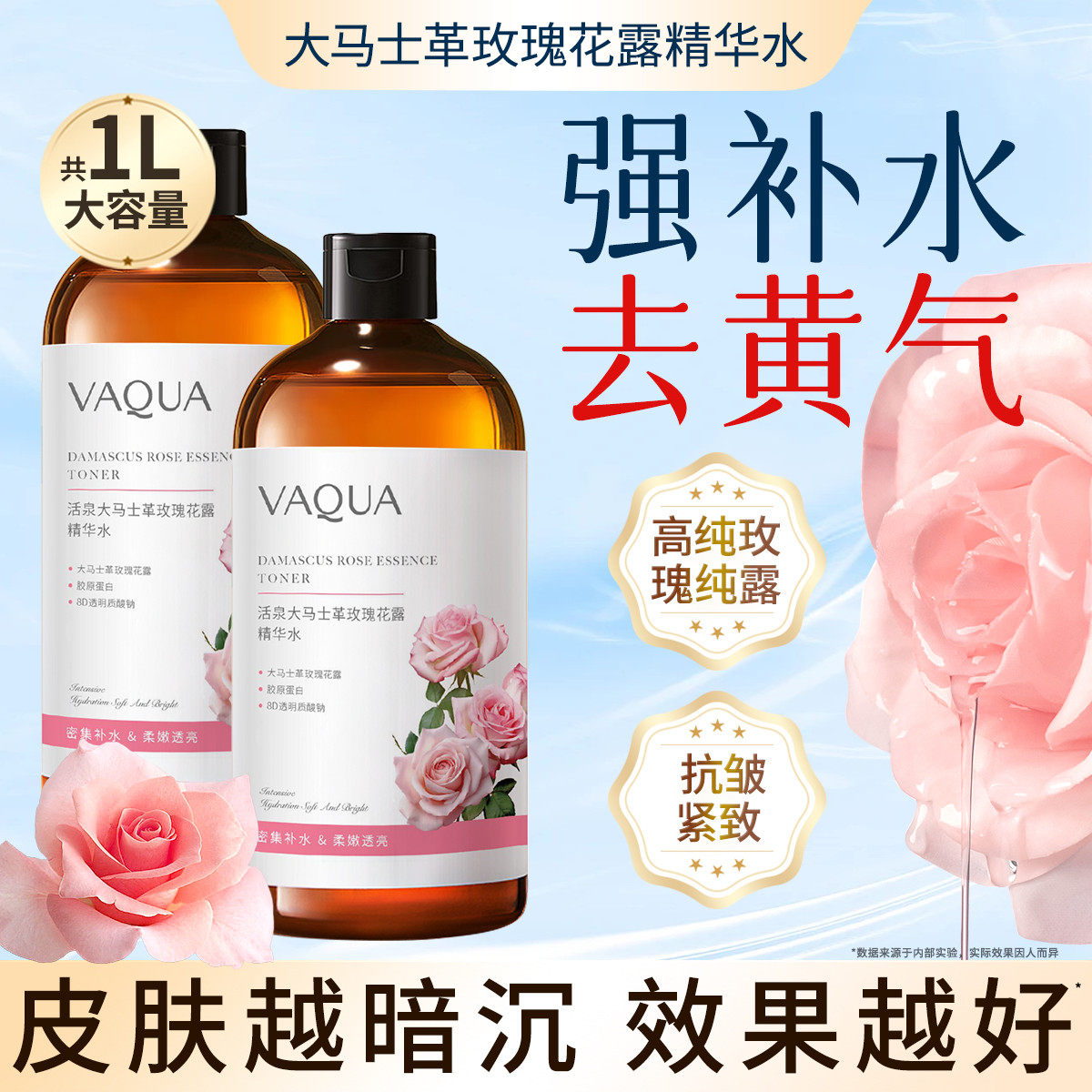 活泉玫瑰纯露爽肤水抗皱紧致补水保湿精华水舒缓湿敷水护肤品大瓶