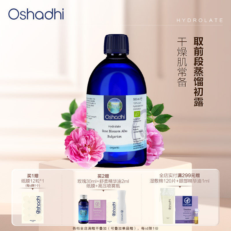 oshadhi德国O家保加利亚大马士革玫瑰纯露花水湿敷水爽肤水保湿