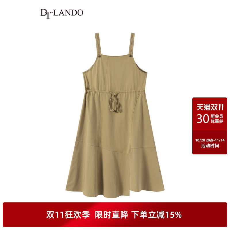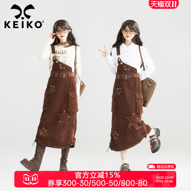 KEIKO 设计感斜肩背带连衣裙25秋季新款美式复古工装风咖色长裙
