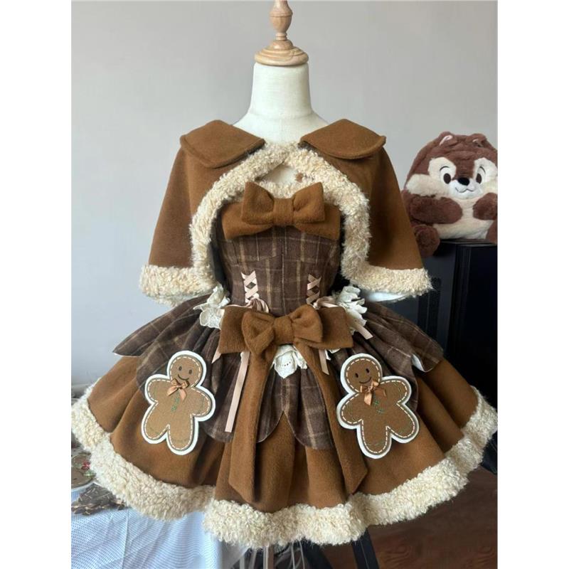 摩卡小棕甜美圣诞洛丽塔拼接斗篷套装蝴蝶结背带连衣裙秋冬两件套