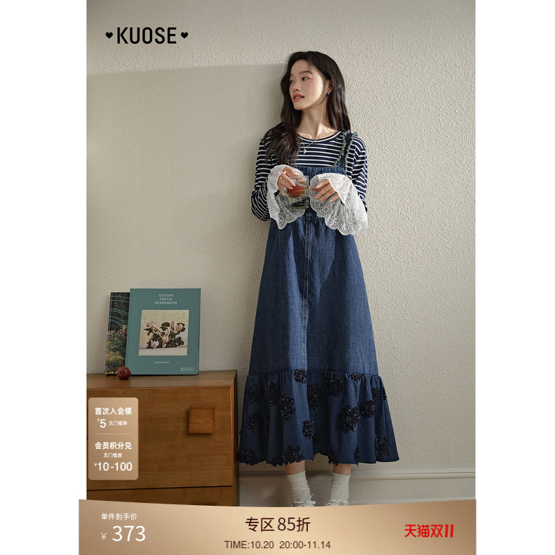 套装/单件韩系减龄纯色牛仔背带连衣裙秋季女学生+百搭长袖衬衫潮