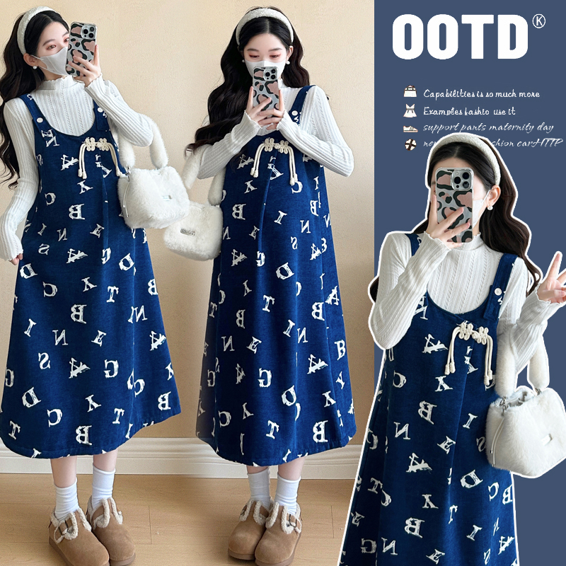 孕妇套装秋装2025新款半高领打底衫内搭波点背带连衣裙秋季两件套