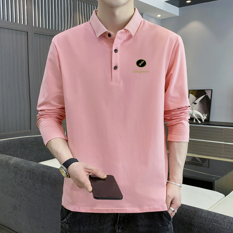 秋季男士长袖t恤春秋季有领粉色中青年秋衣男装爸爸体恤polo衫男