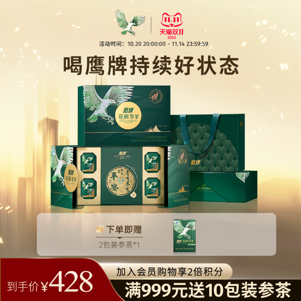 【送礼必备】鹰牌花旗参茶西洋参礼盒高端滋补礼品送长辈礼物官方