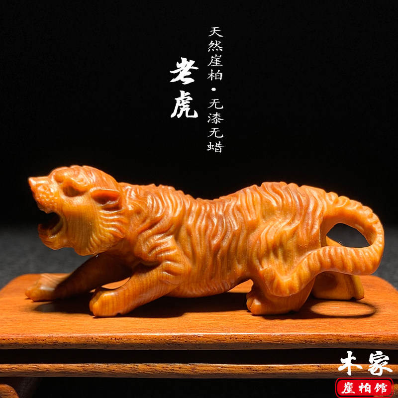 天然崖柏木雕老虎手把件实木雕刻生肖虎摆件家居办公桌装饰工艺品