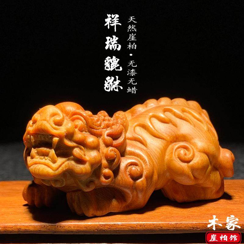 天然崖柏木雕貔貅手把件文玩招财神兽车载摆件家居办公桌面装饰品