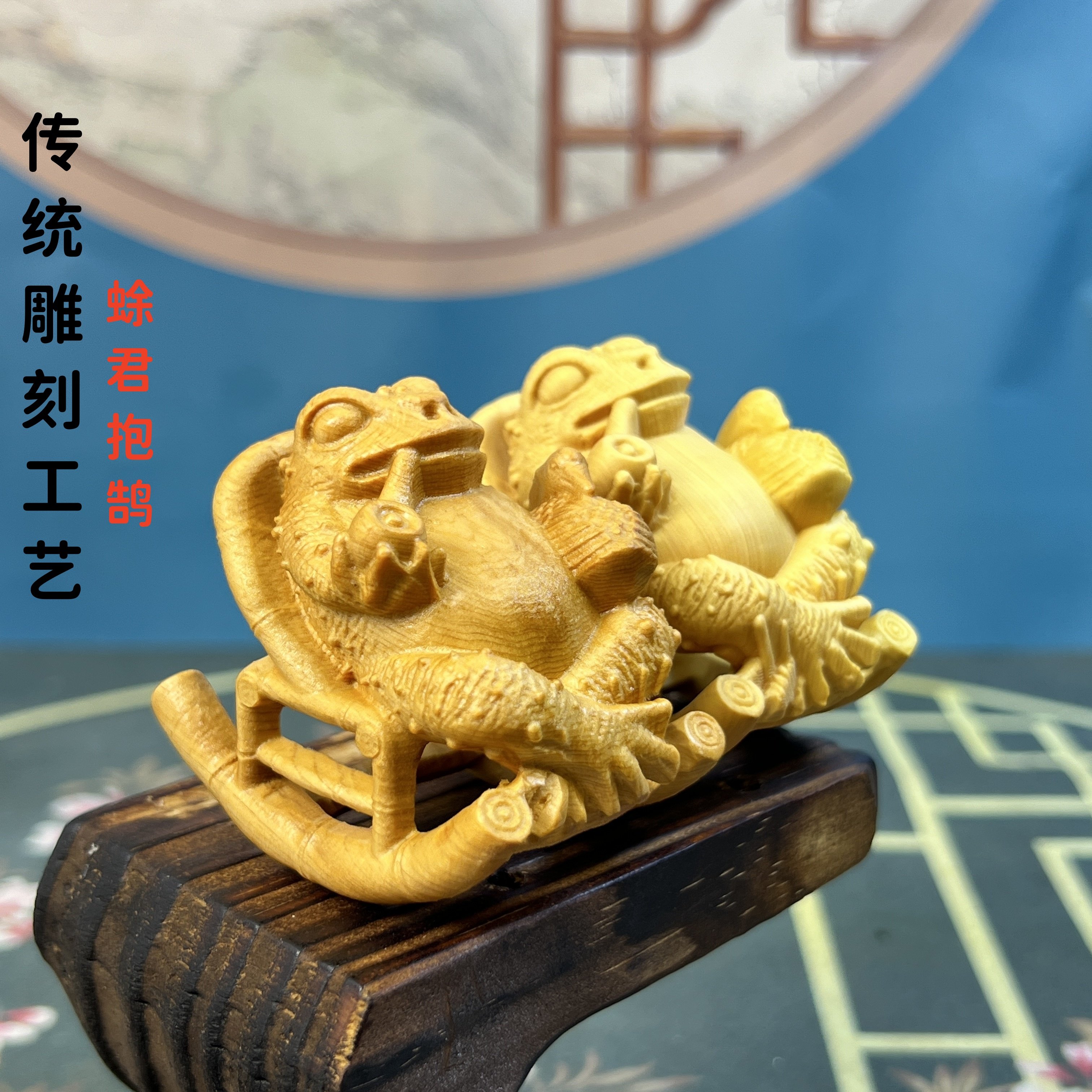 蜍君抱鹄崖柏木雕摇摇椅金蟾蜍招财手把件汽车载摆件中国风装饰品