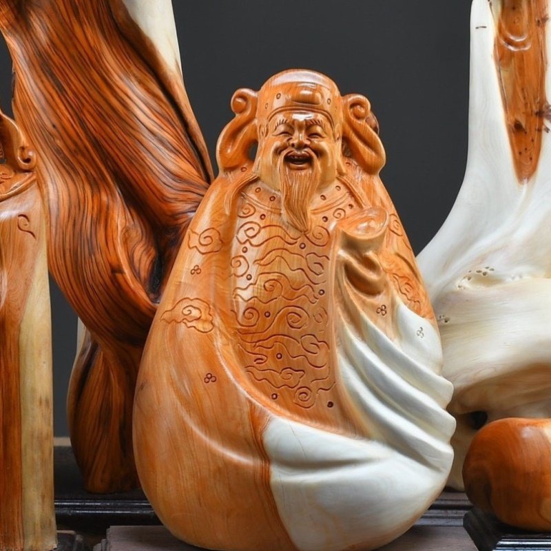 根雕木雕大型崖柏花鸟山水金丝楠关公弥勒财神观音工艺品客厅摆件