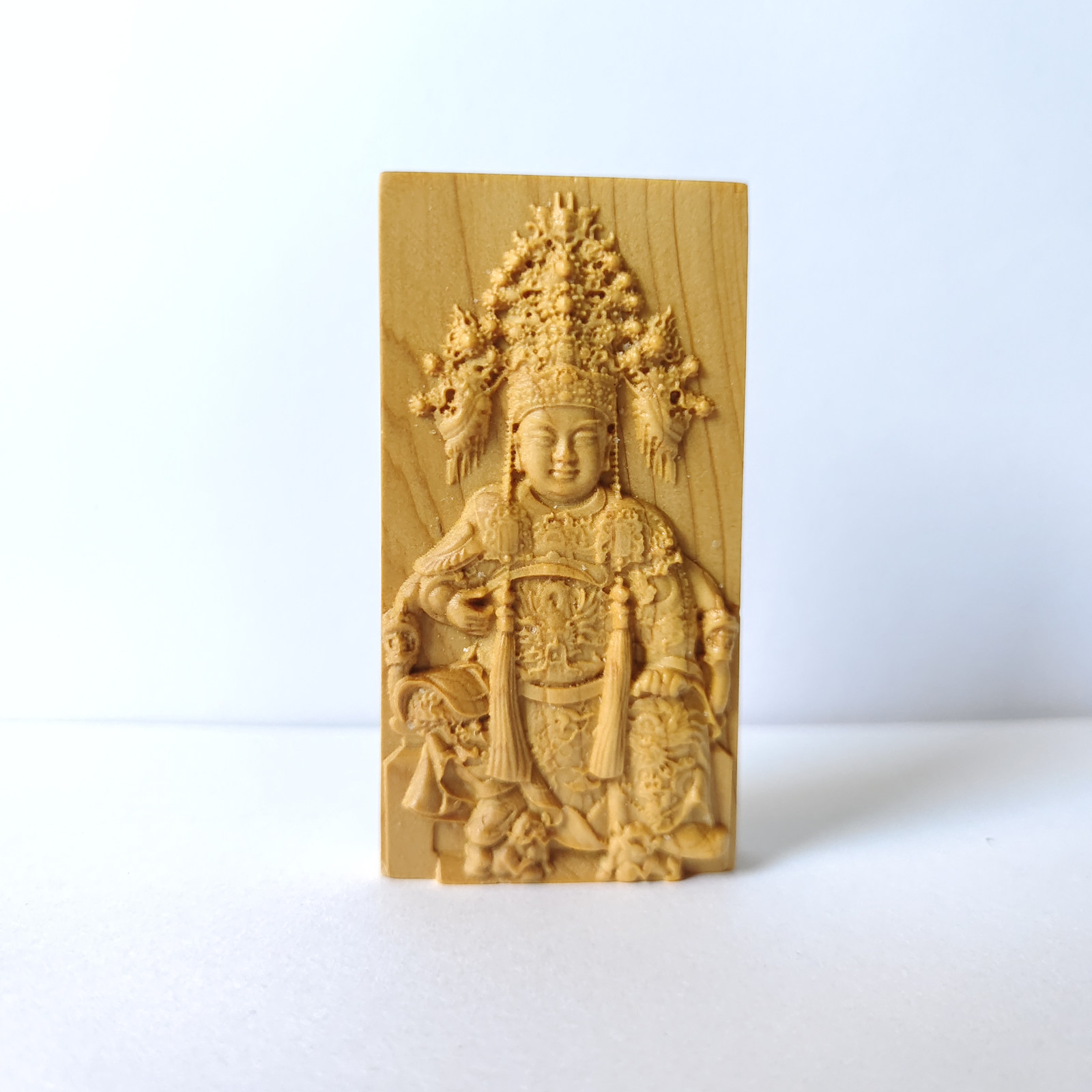 崖柏木雕坐莲托瓶观音菩萨像家用车载佛堂供奉实木佛像工艺品摆件