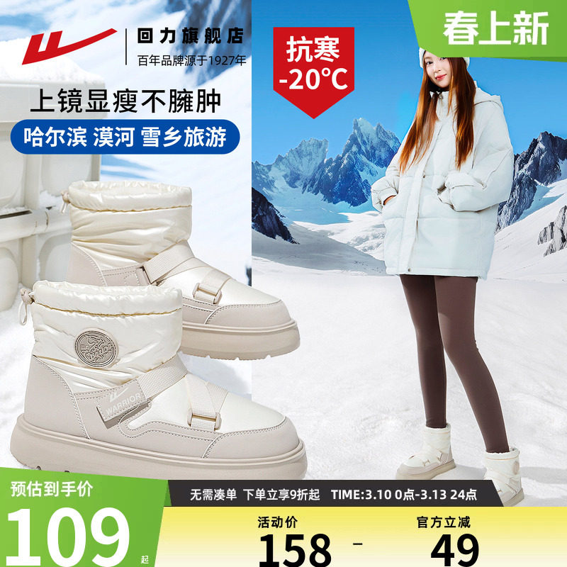 回力全力以赴雪地靴女加绒加厚防泼水止滑保暖2026冬棉鞋厚底中筒