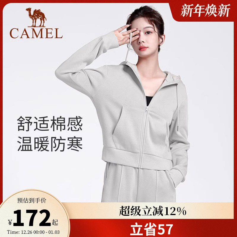 骆驼休闲运动服套装春秋外套女款开衫连帽上衣健身服瑜伽两件套女
