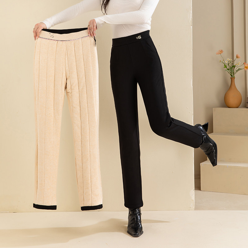 妈妈裤子女秋冬加厚高腰弹力直筒休闲长裤外穿显瘦中老年加绒女裤