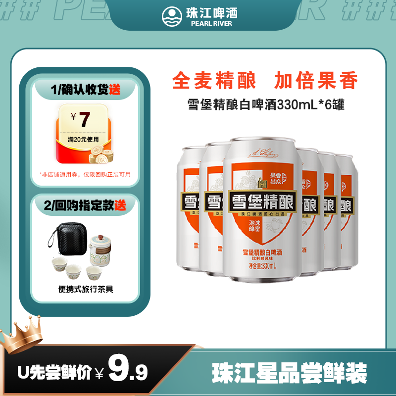 【会员U先】珠江啤酒11°P雪堡精酿白啤330mL*6罐小包装
