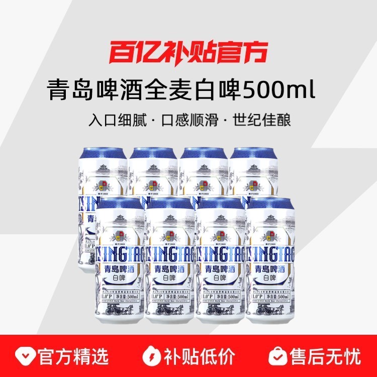TSINGTAO/青岛啤酒 全麦白啤系列500ml*8罐/12罐畅饮正品百亿补贴
