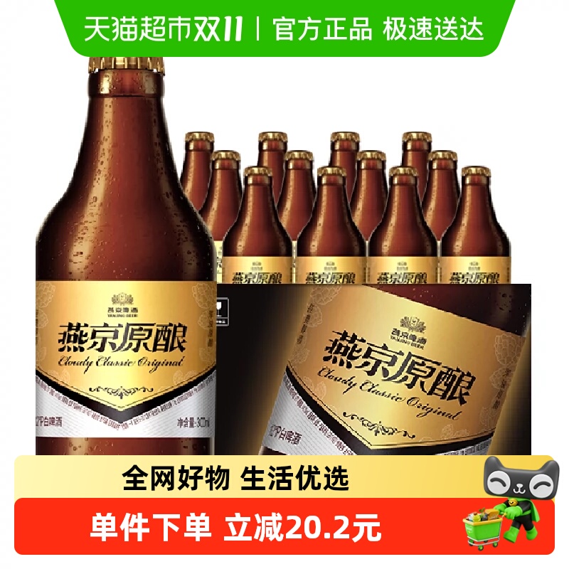 【燕京啤酒】12°P桃花版原浆白啤500ml*12整箱听装高端品质啤酒