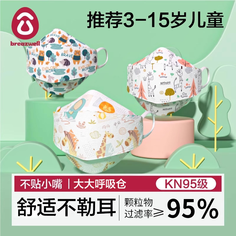 kn95儿童口罩防雾霾防尘透气男女童小孩3-6岁n宝宝专用3d立体95