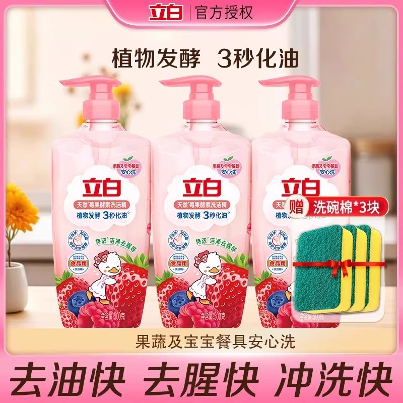 立白天然莓果酵素洗洁精3秒化油果蔬清洗剂洗碗液家用实惠装正品