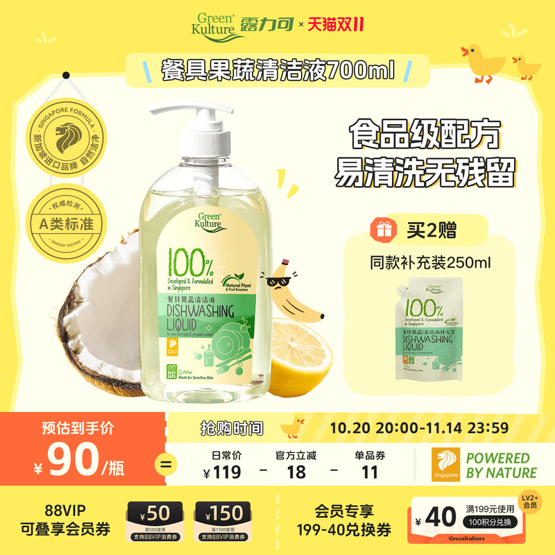 GreenKulture露力可进口母婴洗碗液天然酵素食品级洗洁精果蔬清洁