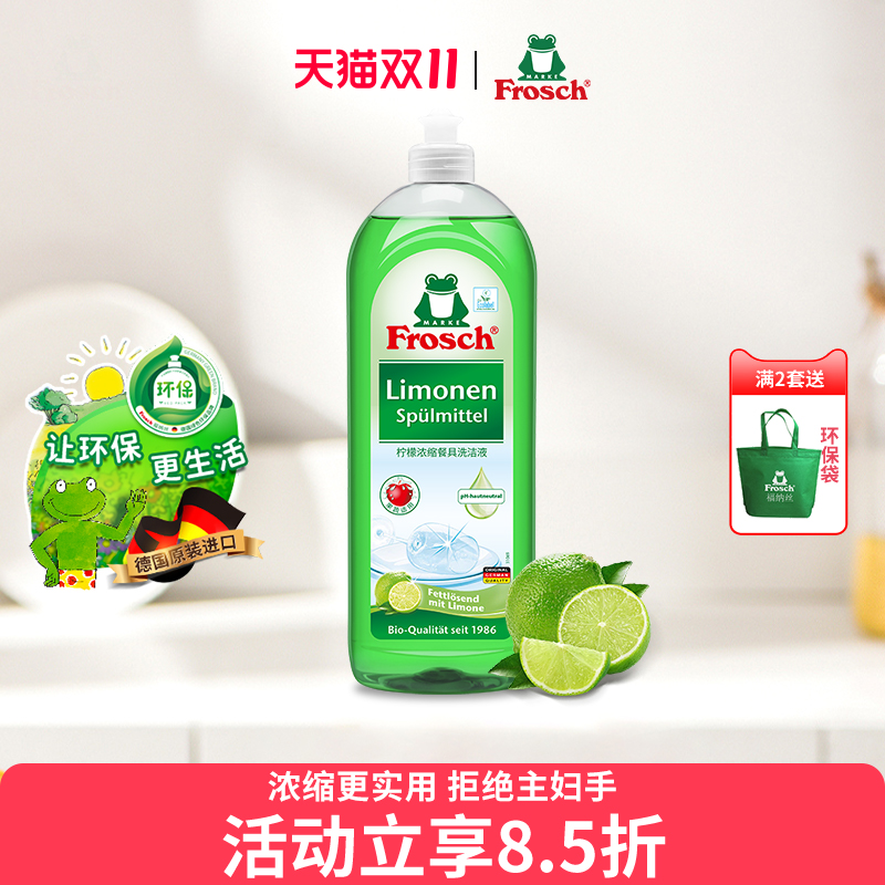 德国进口frosch柠檬a类食品级去油洗果蔬不伤手天然洗碗液洗洁精