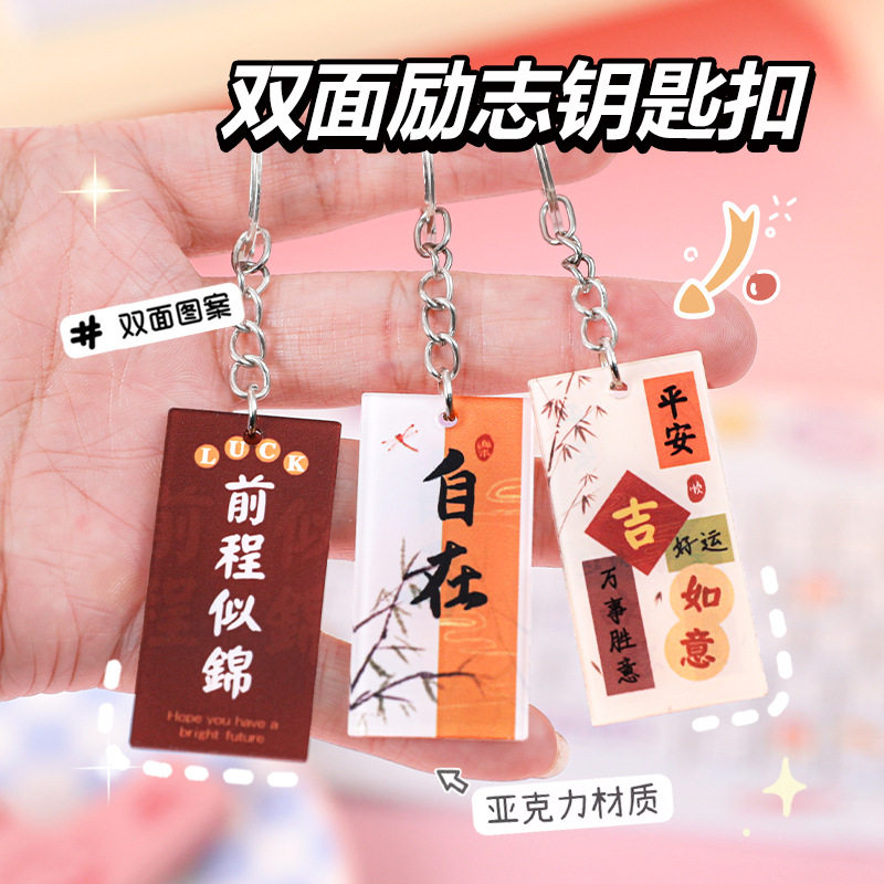 中国风双面文字钥匙扣 励志亚克力吊牌小挂饰中考高考奖励小礼品