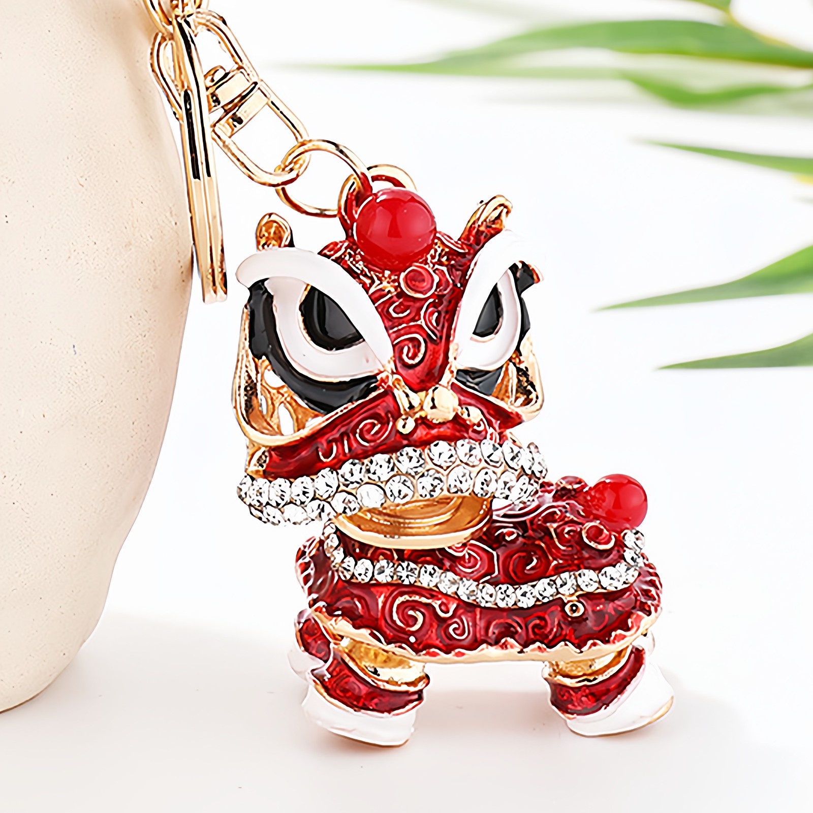 醒狮钥匙扣文创礼品中国风舞狮头挂饰镶钻小狮子包包挂件创意礼品