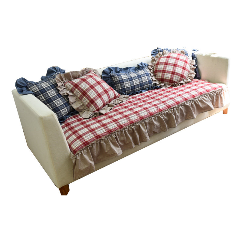 格子全棉四季沙发垫子沙发巾全包沙发布皮沙发垫简约通用木耳花边