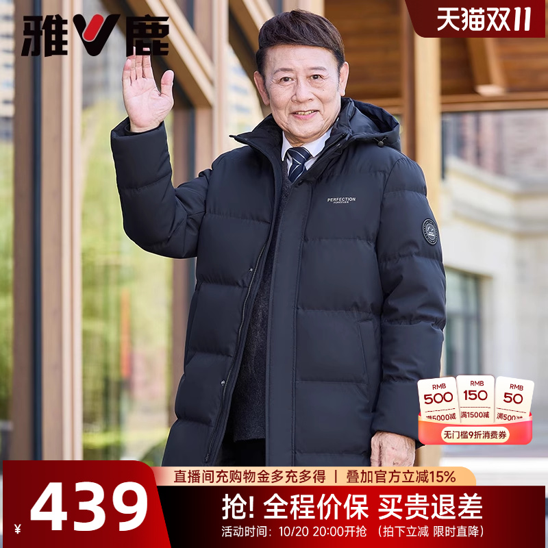 雅鹿中老年羽绒服男加厚2025冬季新款爸爸冬装中长款保暖防寒外套
