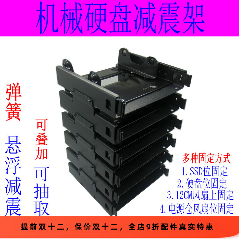 12cm风扇位硬盘架 3.5机械硬盘盒多层叠加减震硬盘架 外置硬盘架