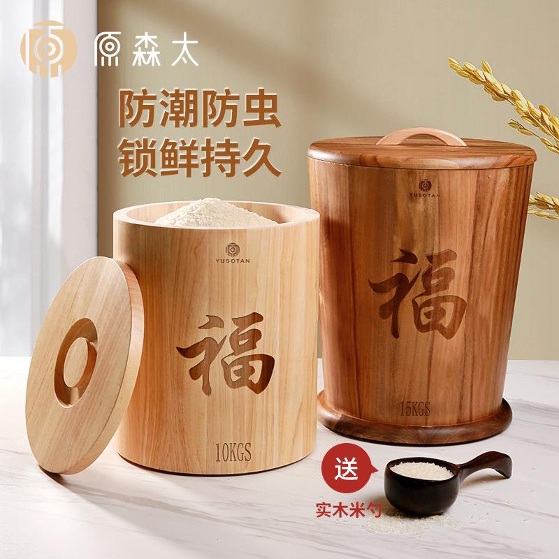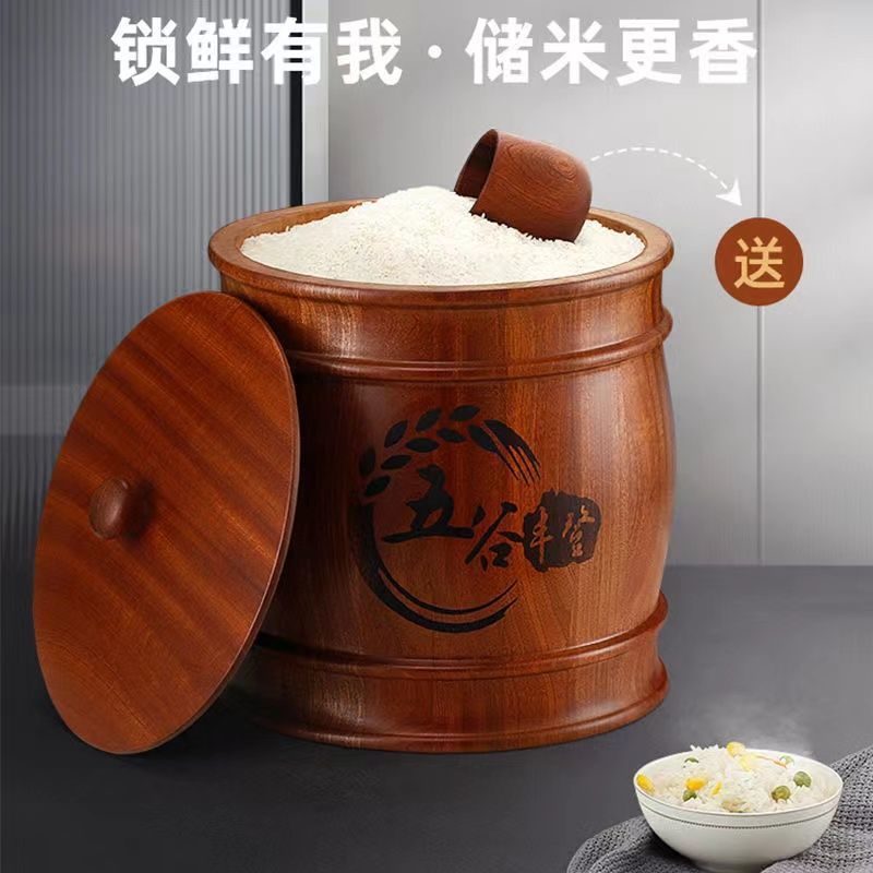 实木米桶米缸储米箱家用大中小号木质装米桶防潮防虫密封木制米箱
