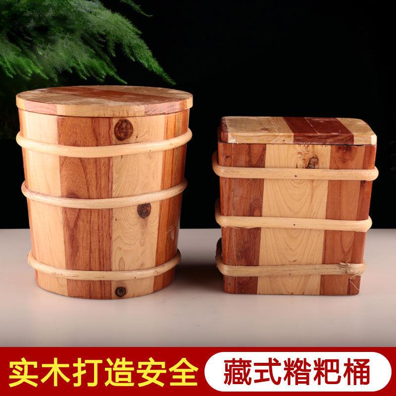 65cm50cm藏式长方形糌粑桶高方桶带盖酸奶桶实木桶木质米桶米箱