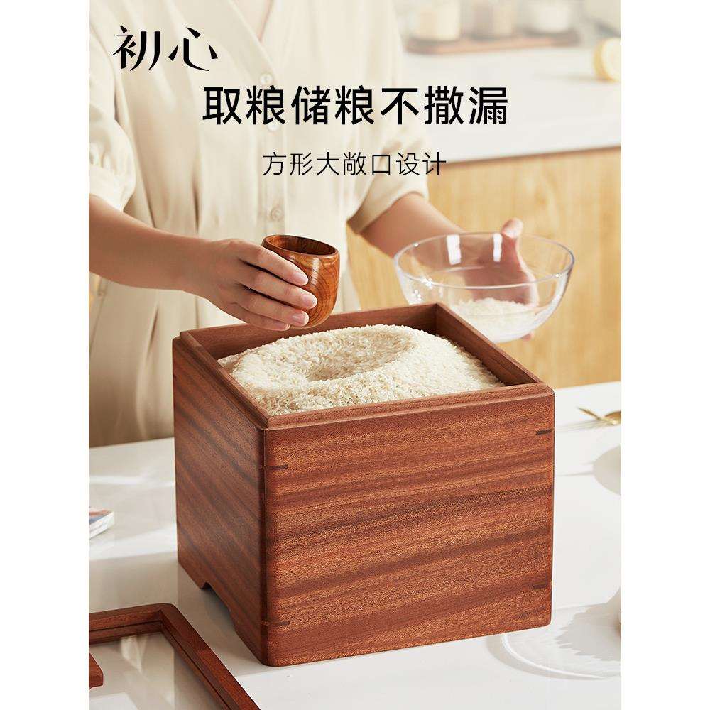 初心木质米桶家用防虫防潮密封米缸放米箱储存容器大米收纳盒大号