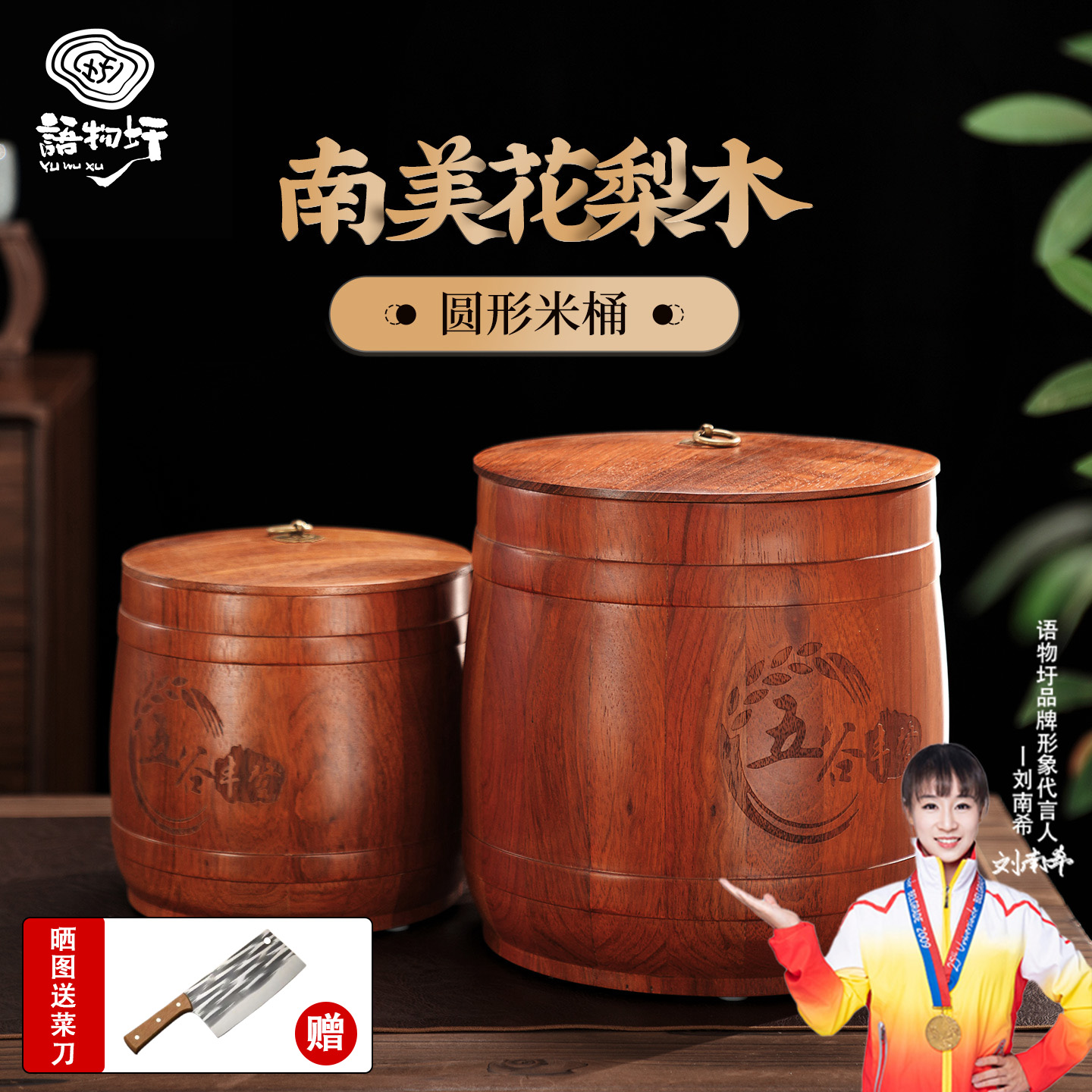 花梨米桶家用实木质防虫防潮密封储米收纳箱面粉大米缸茶罐20斤装