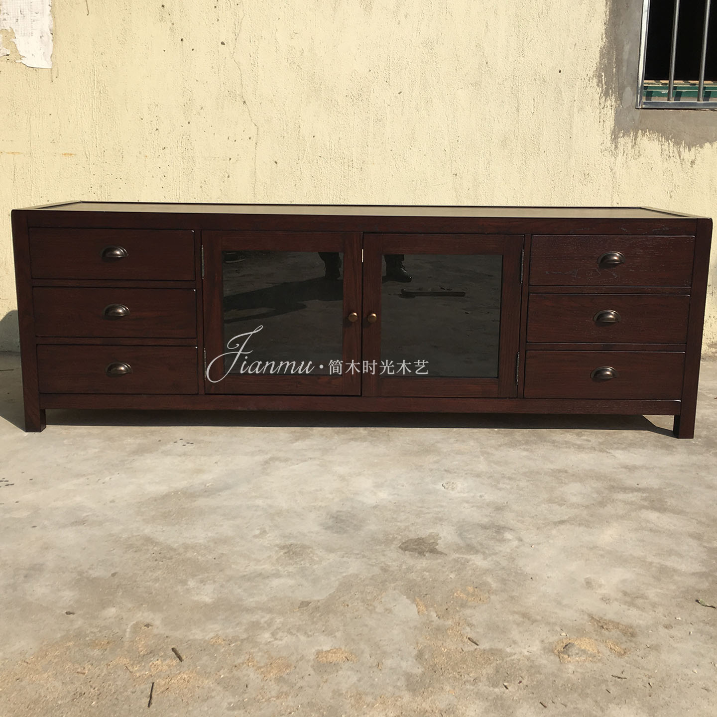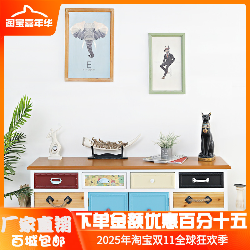 美式乡村电视柜实木复古收纳电视柜客厅组合储物矮柜卧室收纳窄柜