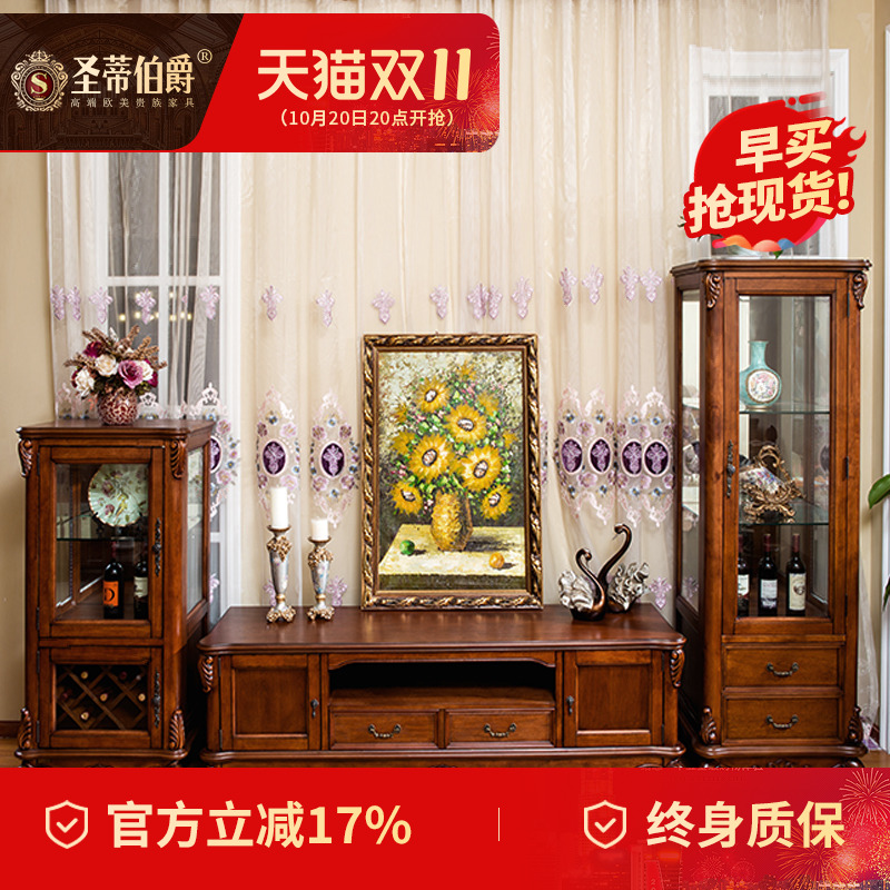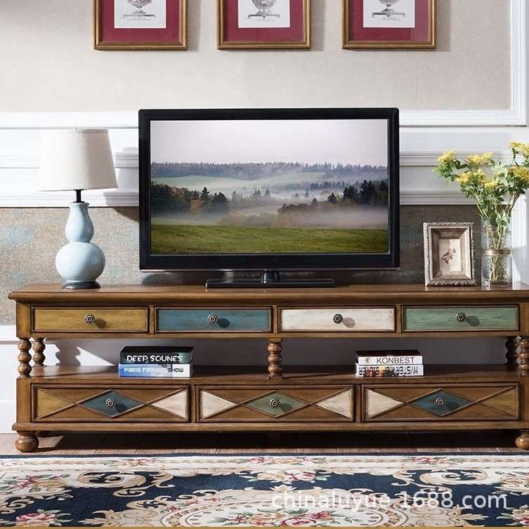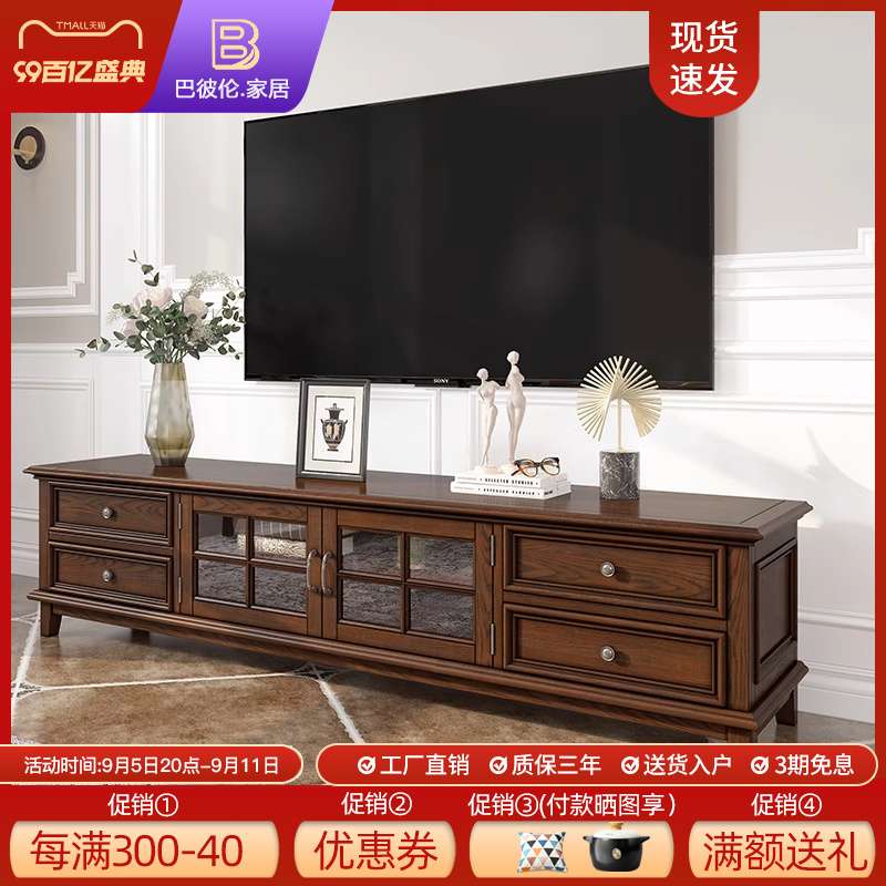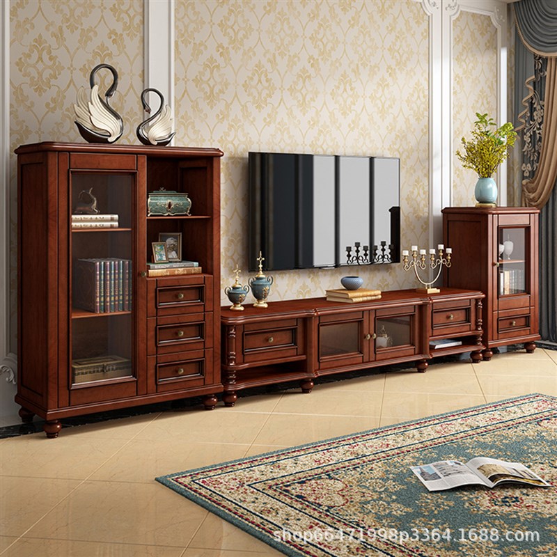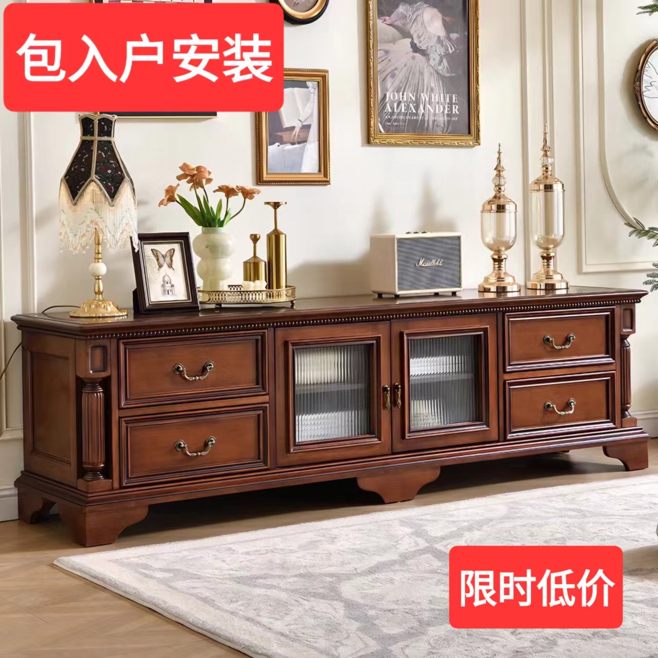 客厅2米茶几整装别墅家用2.美式乡村实木电视柜储物柜组合大户型