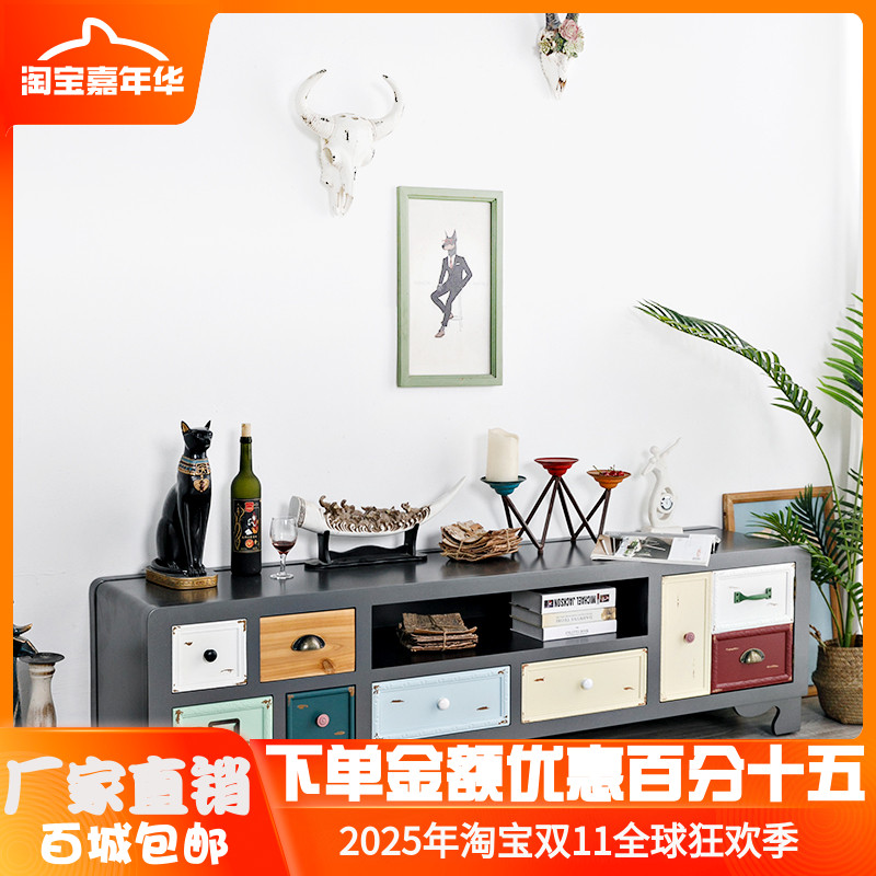 美式乡村实木电视柜茶几组合复古北欧墙柜组合小户型客厅风格家具
